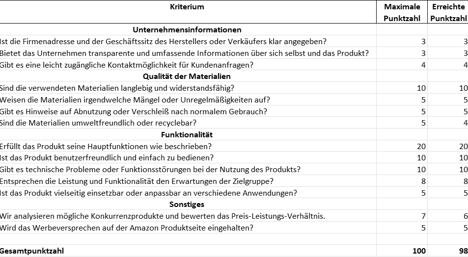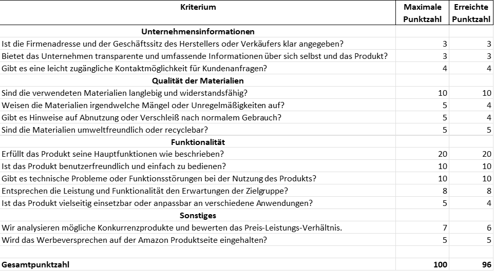 Mit folgendem Testergebnis bewertet:
